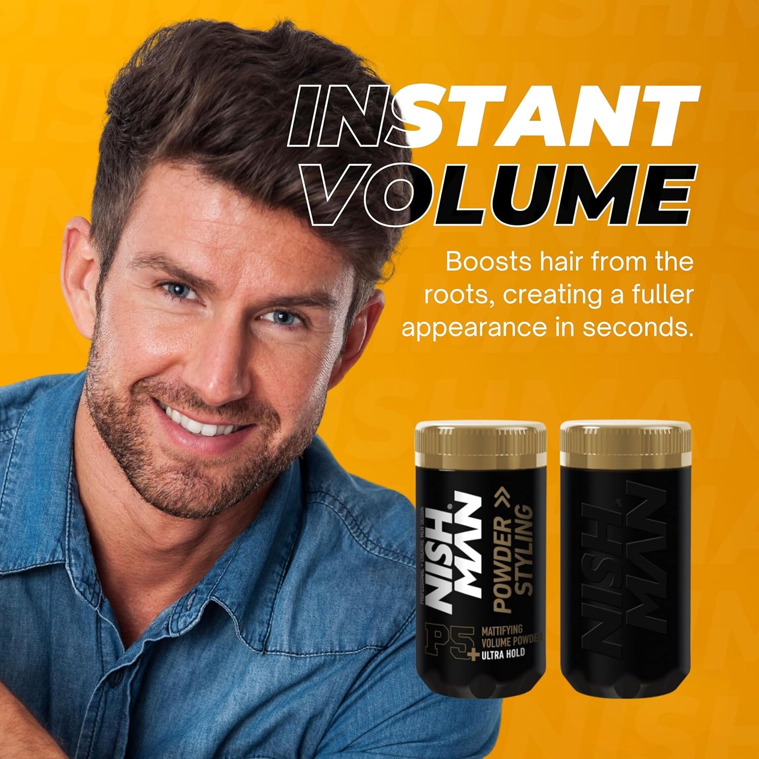 Ervaar een revolutionair stylingproduct met de NISHMAN P5+ Volumepoeder. Dit innovatieve poeder biedt direct een matterende textuur en verandert van een lichte poederformule in een romige wax. Ideaal om je haar een natuurlijke, matte uitstraling te geven zonder witte resten of vettigheid. Het resultaat? Prachtig haar met een natuurlijke uitstraling en een stevige, langdurige hold.