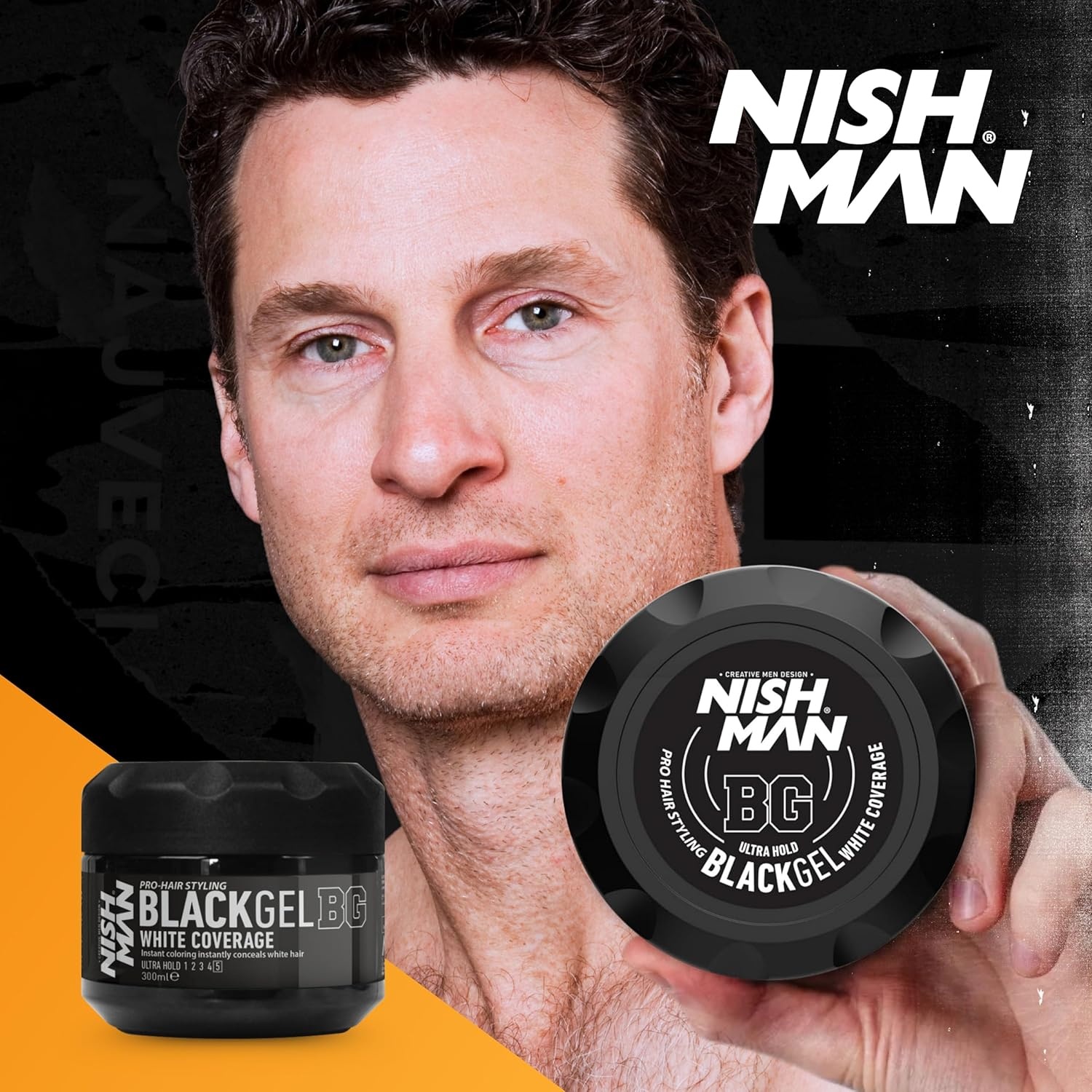 In slechts enkele seconden kunt u uw grijze haar zwart maken met de Nishman Black Hair Gel-droogformule. echter snel aanbrengen op het haar zonder te fixeren voor warrig haar, het product aanbrengen op nat en laten drogen.